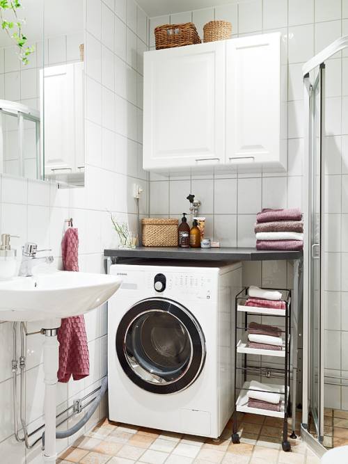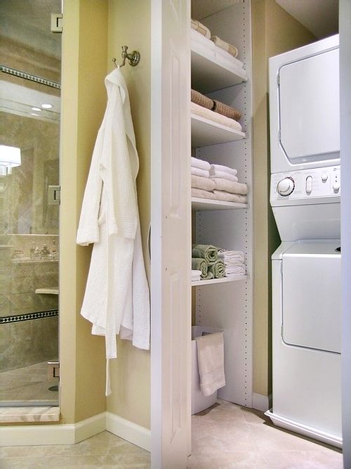 Conviene para ahorrar espacio crear una columna con los electrodomésticos que se incorporan a la habitación, como la lavadora y la secadora, lo mismo con las cajas o cestos que se usen para almacenar la ropa pendiente de lavar, la limpia y la que está lista para planchar, como así también aquellas prendas que necesitan costura.