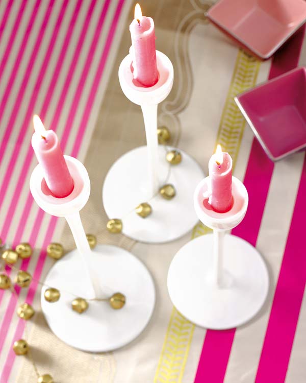 Escoge un mantel que combina rosa intenso o fucsia y blanco, vajilla y blanca y cristalería de líneas puras. Completa el conjunto unos detalles en dorados que se pueden incorporar con accesorios como candeleros, guirnaldas y unas velas de color rosa que complementen el diseño del mantel.