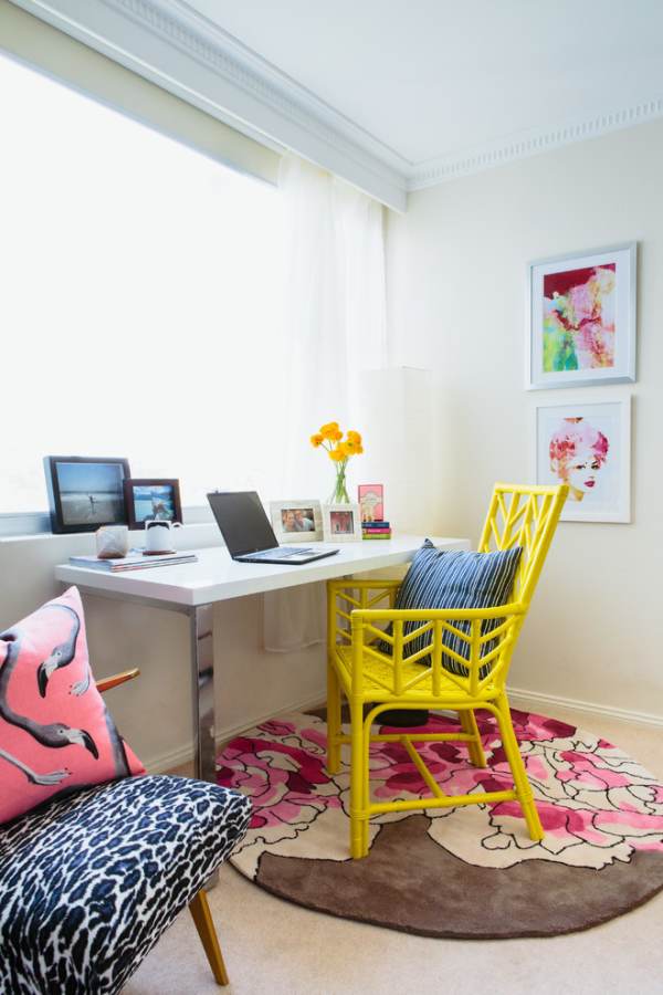 Renueva un asiento, que se convertirá en una buena compañía durante las horas de trabajo o de estudio. Escoge una silla cómoda, pero sin descuidar la estética, además un modelo convencional puede transformarse por completo mediante el color. La propuesta es aplicar nuevas capas de pintura a la superficie de la silla elegida o cambiando el tapizado por un textil colorista y con atractivos patrones.