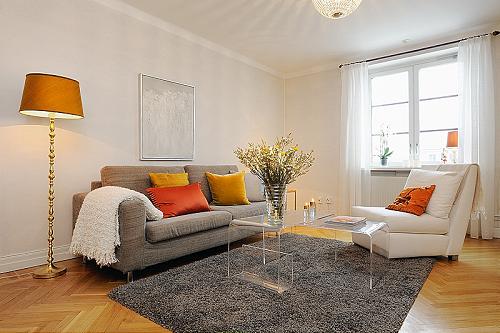 El esquema cromático que domina toda la decoración de este práctico y actual apartamento incluye distintos tonos de blanco, y con pinceladas de colores alegres y vivos en cada estancia.