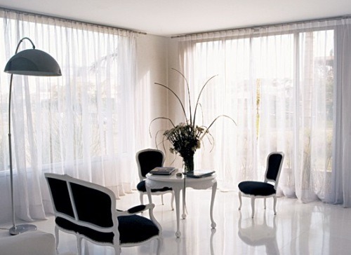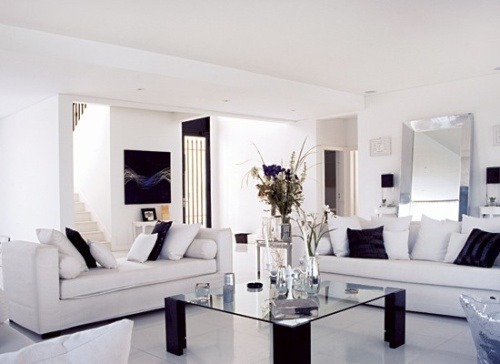 En otros espacios, se repite un esquema monocromático, que fusiona blanco y negro, creando ambientes modernos, con interesante delicadeza y estilo, como es el caso del amplio salón.