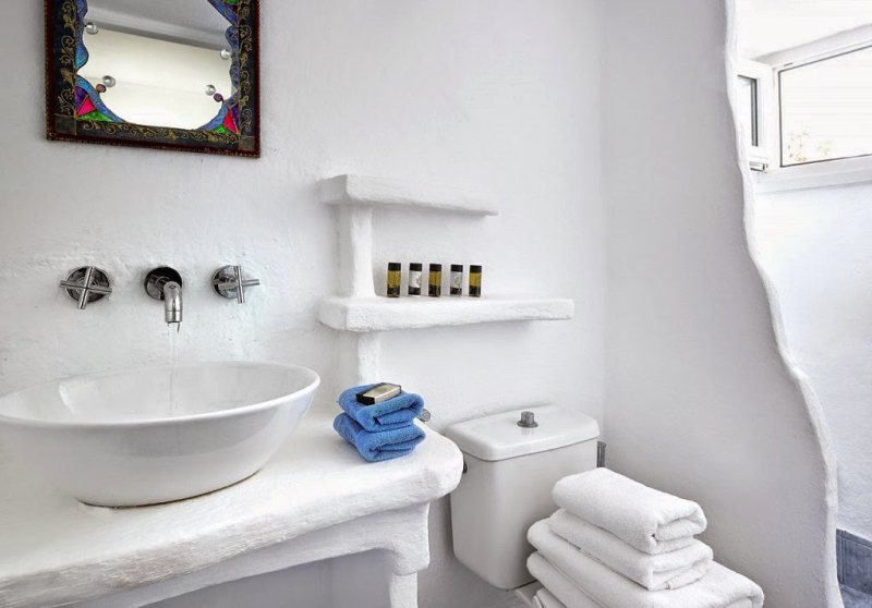 El cuarto de baño es una de mis habitaciones favoritas, luminoso y con mobiliario de obra también, las paredes son las encargadas de imprimir belleza, la simpleza destaca en este ambiente. Las zonas de descanso resultan súper atractivas, con camas que forman parte de la arquitectura y vestidas por textiles que suman calidez y texturas.