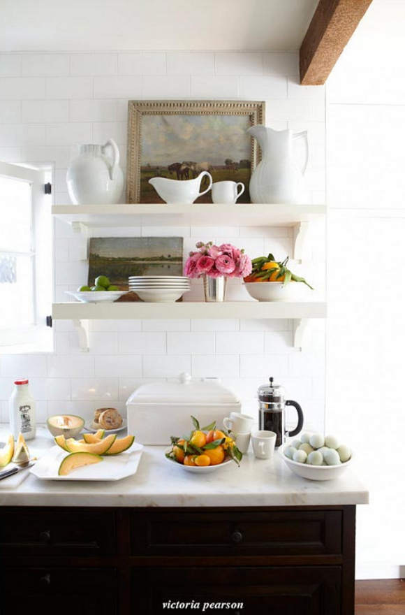 Unos pequeños cuadros, óleos, ilustraciones e incluso fotos se pueden transformar en el fondo perfecto para unos estantes. No solo imprimen ese giro especial y renovador a la decoración, pues a su vez las piezas que los rodean consiguen destacarse y suman color.