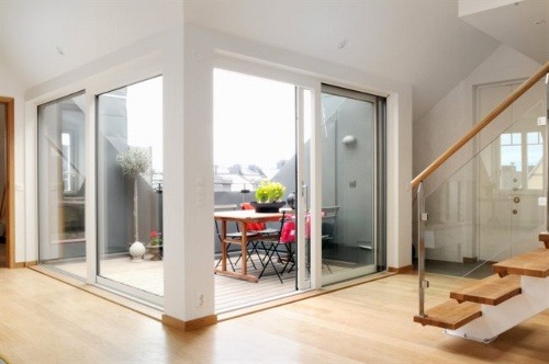 El espacio al aire libre de este ático, situado en Suecia, se desarrolla en una pequeña terraza, que sigue la línea moderna de la decoración del interior de la vivienda.