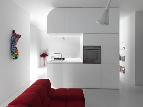 Romolo Stanco es el creador de este apartamento de vanguardia, que con el mobiliario hecho a medida permite un aprovechamiento máximo del espacio y crear diferentes zonas en un piso pequeño, rentabilizando así cada metro cuadrado y sin dejar de lado el estilo.