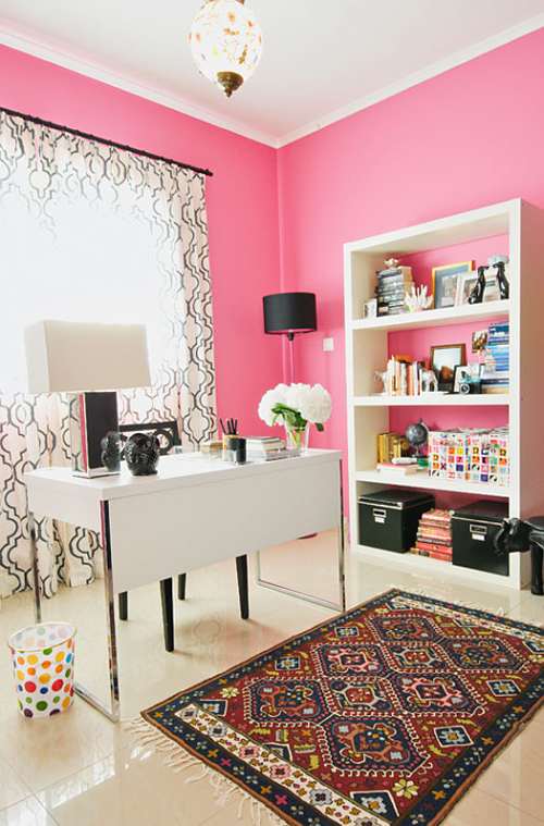 - Puedes añadir vida y encanto a un espacio de trabajo apostando al color, Como ocurre en esta oficina, con unas paredes que se roban todas las miradas pues se han pintado en un rosa chicle.