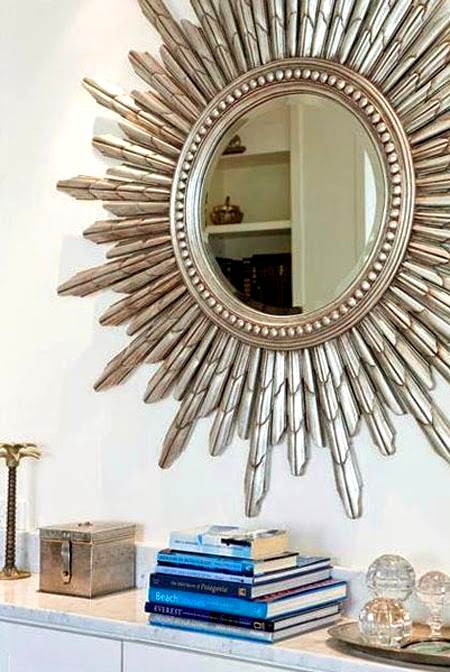 Además de los originales espejos sol, se puede escoger las versiones mas modernas, que se presentan en materiales y acabados distintos, como madera o metal, pero que conservan el espíritu de los clásicos, con los ornamentos y motivos que identifican la esencia de estas atractivos complementos decorativos.