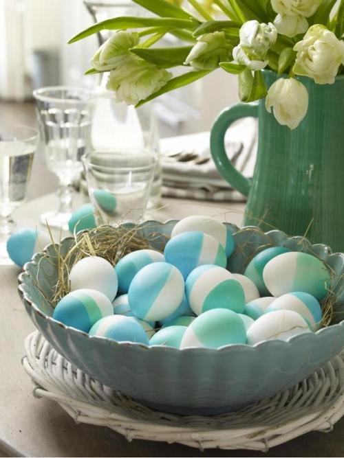 A los clásicos huevos de pascua de chocolate se suman otros decorados con simpáticos patrones, servilletas alegremente dobladas, vajilla original, flores y velas, crean mesas creativas y con estilo.
