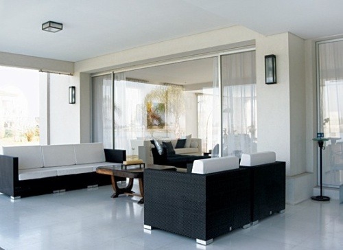 En esta casa moderna las habitaciones son amplias y luminosas, con ambientes de calma y serenidad. El blanco puro predomina y es uno de los grandes protagonistas en la decoración de esta elegante casa, está presente en revestimientos, los techos, suelos y paredes, además de en algunos muebles.